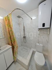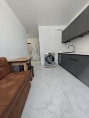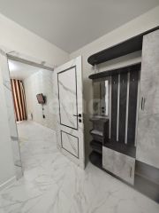 Однокомнатная квартира площадью 32,6 кв.м расположена на втором этаже трехсекционного жилого комплекса "Сакский Квартал" в селе Фрунзе Сакского района, в 3,5 км от моря. Объект полностью готов к проживанию: выполнен современный ремонт с использованием качественных материалов, установлена новая мебель и техника. В квартире уложен ламинат, смонтирован теплый пол, стены отштукатурены и оклеены обоями под покраску. Санузел оборудован душевой кабиной, мойкой и унитазом, подведены все необходимые коммуникации — вода, электричество, вентиляция, установлен бойлер. Дополнительные удобства включают кондиционер, металлопластиковые окна, надежную входную дверь и приборы учета. Из комнаты с большим окном есть выход на балкон, из которого открывается вид на двор.