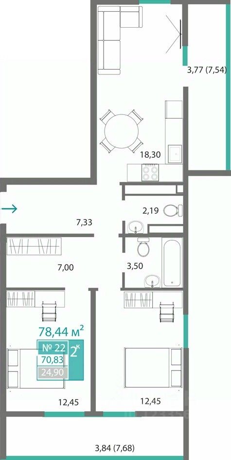 Продаётся 2-комнатная квартира в строящемся доме (3 этап (Секция Б7.1)), срок сдачи: I-кв. 2027, общей площадью 70.83 кв.м., на 4 этаже. Новый жилой квартал "Горизонты" от застройщика "Монолит" расположен по адресу Республика Крым, Симферополь, микрорайон Крымская роза.