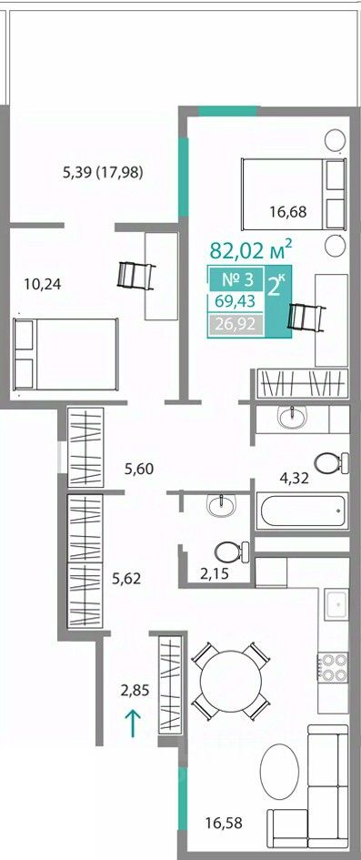 Продаётся 2-комнатная квартира в строящемся доме (6 этап (Секция М)), срок сдачи: I-кв. 2027, общей площадью 69.43 кв.м., на 1 этаже. Новый жилой квартал "Горизонты" от застройщика "Монолит" расположен по адресу Республика Крым, Симферополь, микрорайон Крымская роза.