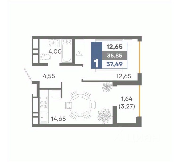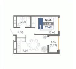 Общая площадь37,49 м²