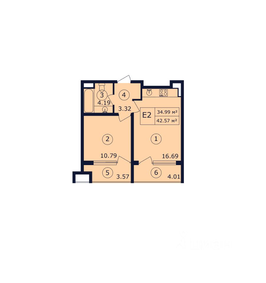Общая площадь42,57 м²