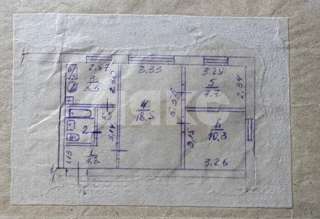 Площадь: 50 кв.м (жилая —36,5 кв.м, кухня —6 кв.м).