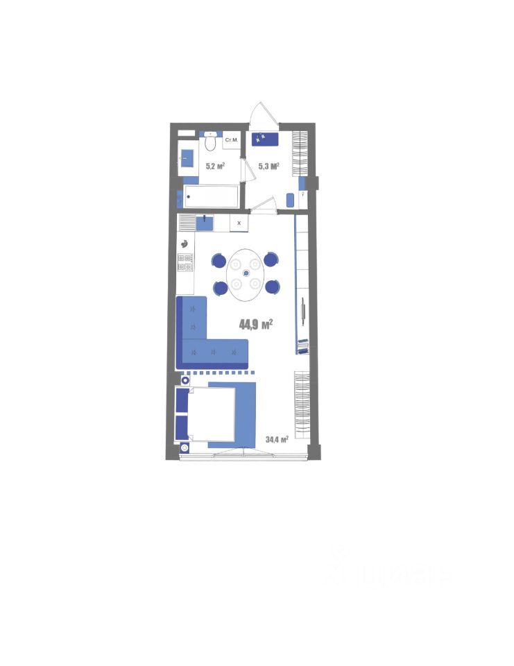Общая площадь44,9 м²