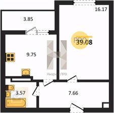 Жилая площадь — 18.1 м² Кухня — 9,75 м² Потолки — 2,7 метра Удобная планировка: комната правильной формы и большая кухня, позволяющая организовать обеденную зону и зону хранения.