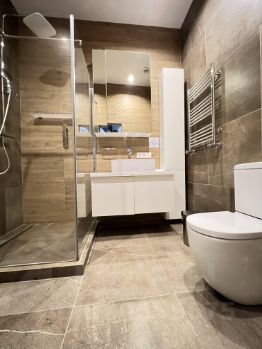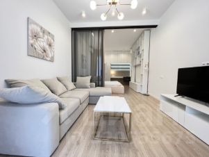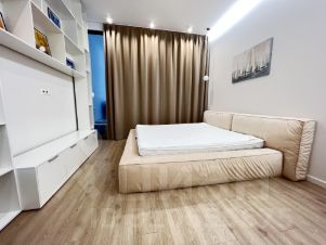 Два санузла, прачечная, две спальни + кухня-столовая-гостиная(есть раздвижная перегородка, которая превращает комнату в отдельную).