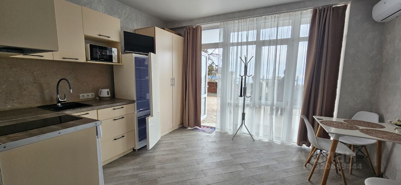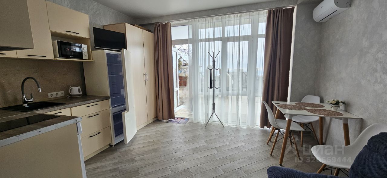 Видовая квартира-студия на 1 этаже из 4х, общей площадью 21м2, с мебелью и техникой. В квартире панорамные окна, смотрит на южную сторону на море. Отопление- тёплый пол, кондиционер.