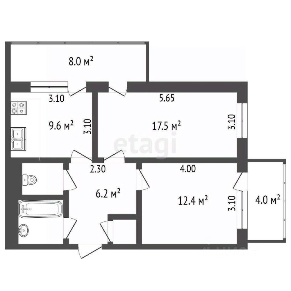 Квартира полностью готова к проживанию, остается кухонный гарнитур.