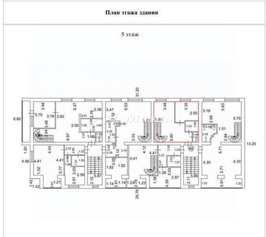6 этаж (мансардный), 1 комната 12.70 кв.м., 2 комната 10.43 кв.м., сан. узел 4.34 кв.м.