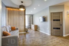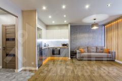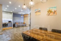 Новый ремонт с очень просторной планировкой, где предусмотрели все самое необходимое для жизни, а именно: совмещенный санузел, гардеробную, просторную спальню и столовую зону, отдельно для гостей зону с двуспальной кроватью, зона кухни с гостиной. Напольное покрытие выполнено из плитки, в спальне уложен качественный ламинат.