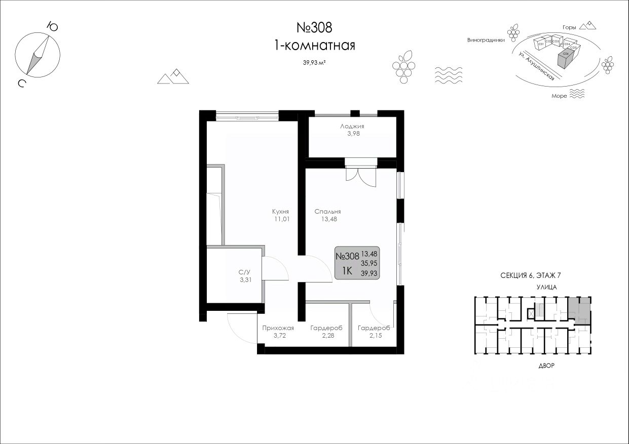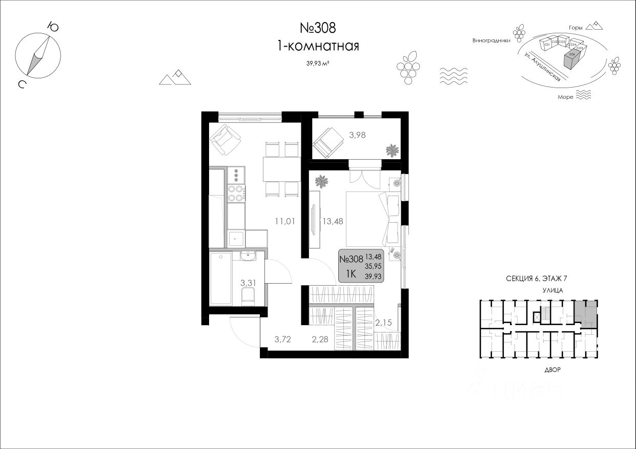 Продается квартира общей площадью 39,93 м2 в комплексе бизнес-класса "Долина Роз" в г. Судак. Квартира N 1/6-308 Видовые характеристики: 2 стороны Этаж: 7 Высота потолков: 3м. Особенности: угловая квартира с арочными окнами. Варианты приобретения: — 100% оплата — Беспроцентная рассрочка — Переуступка Преимущества комплекса: — Панорамные виды на побережье, горы и виноградники; — 10 минутах от природных и исторических достопримечательностей; Более 40 видов планировочных решений: — Нет квартир-студий; — Квартиры с собственным патио; — Квартиры с лоджией из кухни-гостиной или из спальни; — Пентхаусы с террасами; — Двухуровневые квартиры с террасами; — Квартиры с арочными окнами; — Квартиры с окном в ванной; — Квартиры с высотой потолка до 3.7м; — ФЗ-214. Инфраструктура: — Открытый бассейн с зонами отдыха и шезлонгами; — Собственная традиционно оборудованная баня; — Многофункциональная спортивная площадка и уличный workout; — Велосипедная дорожка по всему периметру жилого комплекса; — Детские площадки с безопасным покрытием; — Прогулочные аллеи с местами для отдыха; — Торговый центр; — Коммерческие помещения; — Келлеры для хранения вещей — Большая открытая парковка; — Закрытая охраняемая территория. SERVICE Аll inclusive от собственной сервисной компании: трансфер до комплекса, подготовка квартир к вашему приезду, аниматоры на детский праздник, клининг-сервис, экскурсии и трансфер по Крыму, прокат спортивного инвентаря и яхт. Предоставление услуг под любой из ваших запросов! Комплекс реализуется по 214-ФЗ. Для записи на просмотр звоните в отдел продаж!