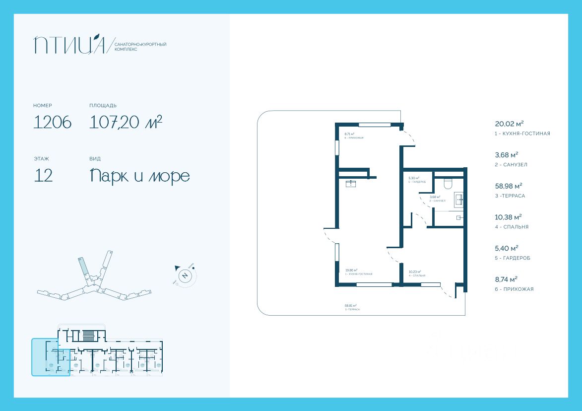 Продаются 2-комнатные апартаменты в строящемся доме (Секция А-Ш), срок сдачи: III-кв. 2028, общей площадью 107.2 кв.м., на 12 этаже. Новый гостинично-оздоровительный комплекс "по ул. Морская" от застройщика "СЗ Атлант" расположен по адресу Республика Крым, Саки, Морская улица