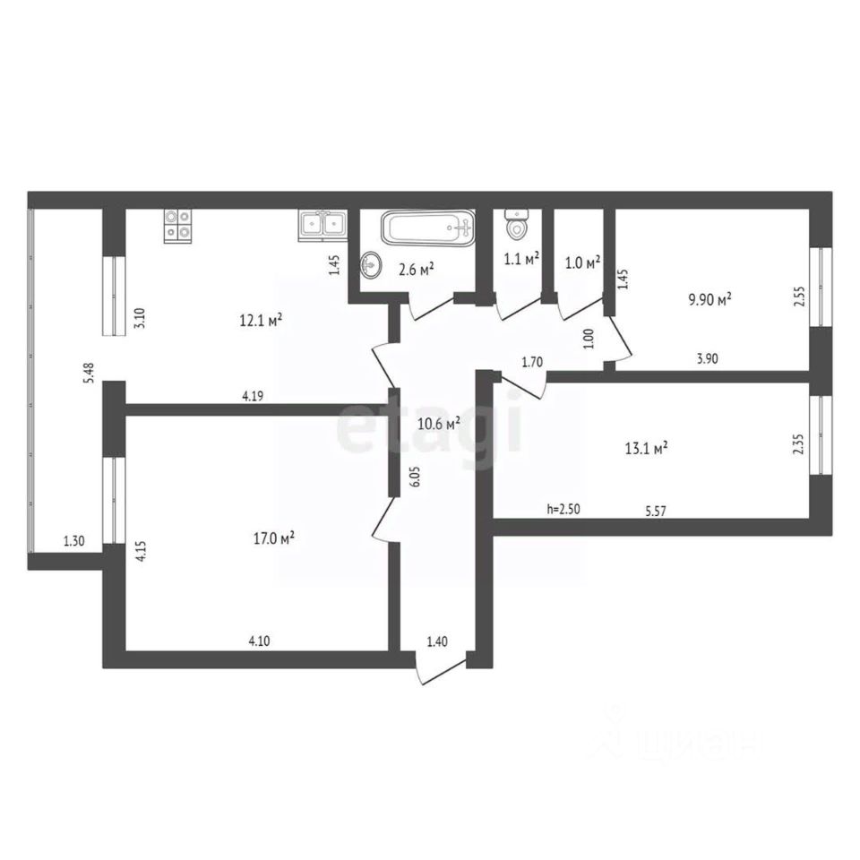Санузел раздельный.