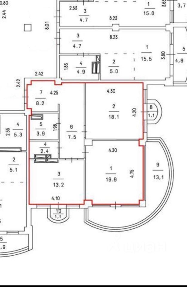 1 лоджия, 2 балкона