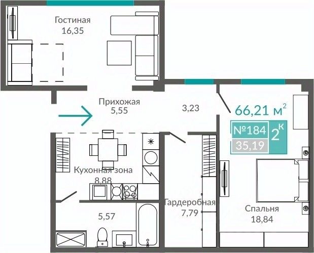 Продаются 2-комнатные апартаменты в сданном доме (Дом 2), срок сдачи: II-кв. 2024, общей площадью 66.21 кв.м., на 4 этаже. Расположение, транспортная доступностьЖК "Золотые пески" расположен в новом районе города Евпатории. Симферопольская улица, переходящая в одноименное шоссе, которое далее становится Евпаторийским шоссе, в направлении города Саки — это полоса между озером Сасык (с одной стороны) и Черным морем (со стороны новостройки). Евпатория известна своими пляжами, наилучшие из которых — песчаные, здесь находится природная широкая полоса песка на протяжении всей трассы.От исторического центра, набережной Евпатории (ориентир — мечеть Джума-Джами), до ЖК "Золотые пески" меньше 5 км. Жилой комплекс очень удобно расположен вблизи автобусных остановок и железнодорожной станции "54-й км". Электричка идет до ж/д вокзала Евпатории около двенадцати минут.ИнфраструктураАпартаменты "Золотые пески" спроектированы как мини-город: жильцы, владельцы или гости апартаментов должны быть полностью обеспечены всем для проживания и отдыха. СПА-центры, кафе и бары, спортивные залы и детские игровые комнаты будут к услугам проживающих в жилом комплексе. Теннисные корты, кинотеатр и открытые детские площадки также предусмотрены проектом.Евпатория с ее развитой инфраструктурой находится недалеко, всего в пяти километрах. В городе расположены медицинские и общеобразовательные учреждения, салоны красоты и рестораны, спортивные комплексы. Несколько километров на машине или автобусе по Симферопольскому шоссе в другую от Евпатории сторону, к городу Саки, — и к услугам жильцов аквапарк "Банановая республика", один из самых известных в этом районе Крыма. Грязелечебницы и озеро Мойнаки находятся в ближайшем к ЖК районе Евпатории, в частных и государственных клиниках предлагаются циклы оздоравливающих ванн и процедур. Озеро и лиман напротив — место, где живет множество птиц, в том числе и лебеди.Надежность застройщикаКрымский застройщик "Монолит" известен на полуострове как строительная компания, активно растущая в профессиональной сфере. В данный момент в портфеле застройщика четыре готовых дома, строится 25 домов. Застройщик на сайте проекта выкладывает актуальные фото и видео, информирует о ходе строительных работ. Сроки не выходят за пределы, указанные в документации.АрхитектураЖК "Золотые пески" возводится в несколько очередей, сдается в эксплуатацию посекционно. По конструкции это жилая новостройка с помещениями под коммерческий найм. Технология постройки — монолитно-каркасная, основа корпусов — железобетон. В каждой из трех секций девять этажей. Фасадная часть отделана ракушечником и штукатуркой. На крыше металлочерепица, есть террасы. Апартаменты пригодны для круглогодичного проживания благодаря собственной котельной, предусмотренной на территории жилого комплекса.В корпусе имеются 1,2,3 и 4-х комнатные апартаменты площадью от 43 до 207 квадратных метров. Планировки просторные, много остекления и света в комнатах, есть лоджии, кухни не менее чем 6 кв. м. Сдавались