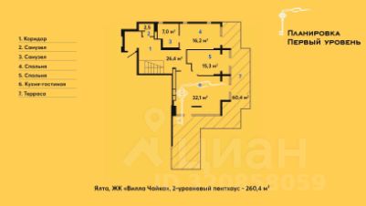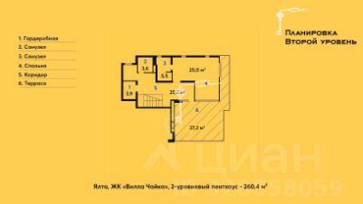 Площадь пентхауса с террасами 260,4 м², внутренняя - 162,7 м².