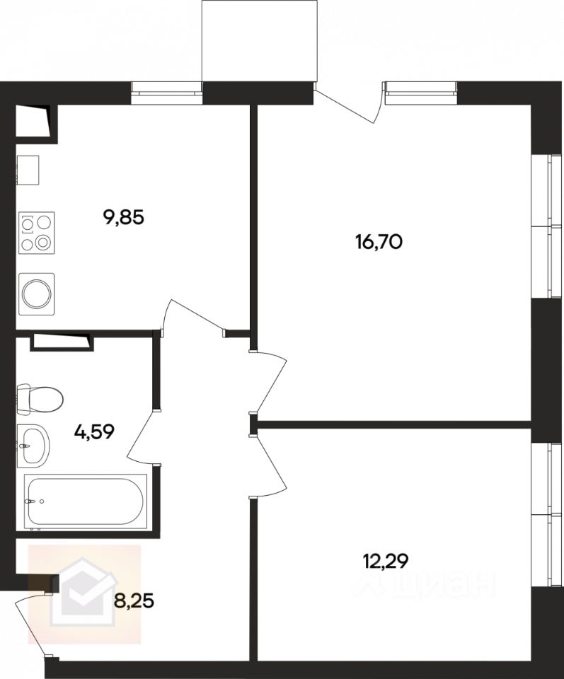Предлагаем к продаже 2-комнатную шикарную квартиру, 51.68 м2 на 1 этаже