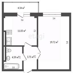 Продается однокомнатная квартира площадью 38,6 кв. м расположена на 3-м этаже современного 9-этажного дома, сданного в эксплуатацию в 2019 году.