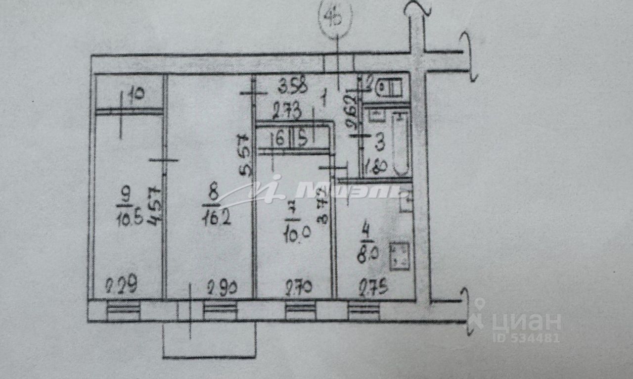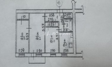 Общая площадь 57.8 кв.м., жилая 36.7 кв.м., кухня 8 кв.м..