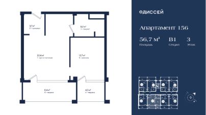 56,7 м²