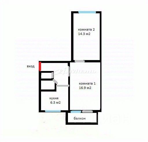 Комнаты раздельные (14.3 кв. м., 16.9 кв. м.).