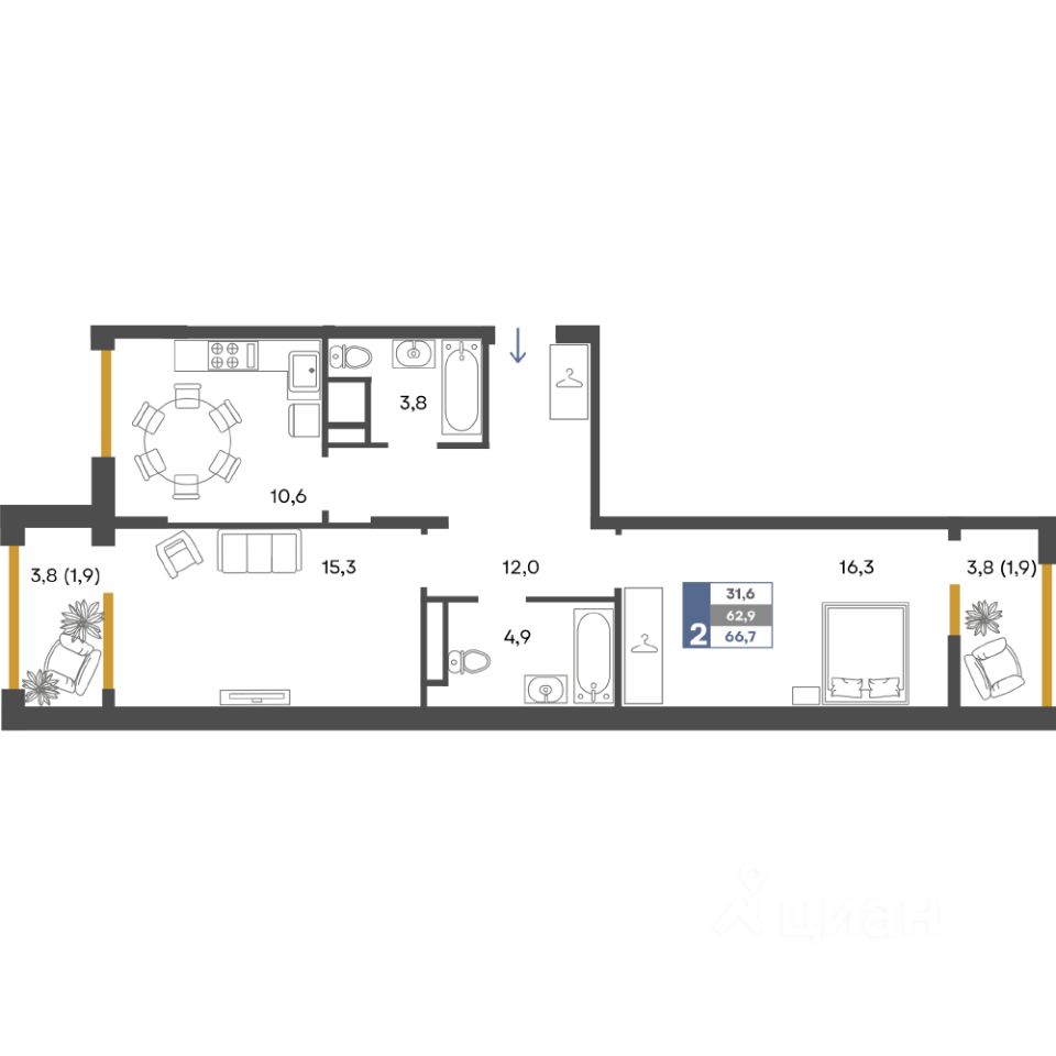 Общая площадь66,7 м²