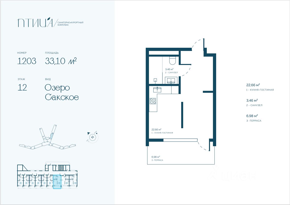 Продаётся студия-апартаменты в строящемся доме (Секция А-Ш), срок сдачи: III-кв. 2028, общей площадью 33.1 кв.м., на 12 этаже. Новый гостинично-оздоровительный комплекс "по ул. Морская" от застройщика "СЗ Атлант" расположен по адресу Республика Крым, Саки, Морская улица