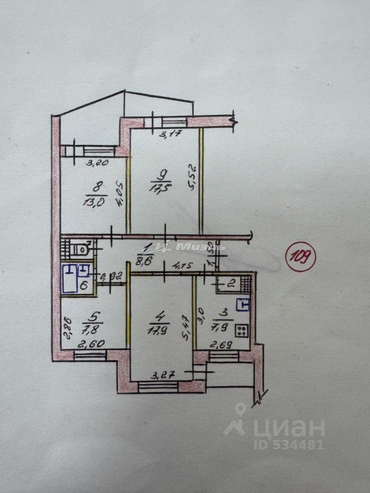 Изолированные комнаты (17.9+17.5+13+7.8 кв.м.)