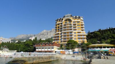 Здание расположено в 50 метрах от береговой линии Черного моря. Из окон открывается шикарный вид на Крымские горы, Ай-Петри.