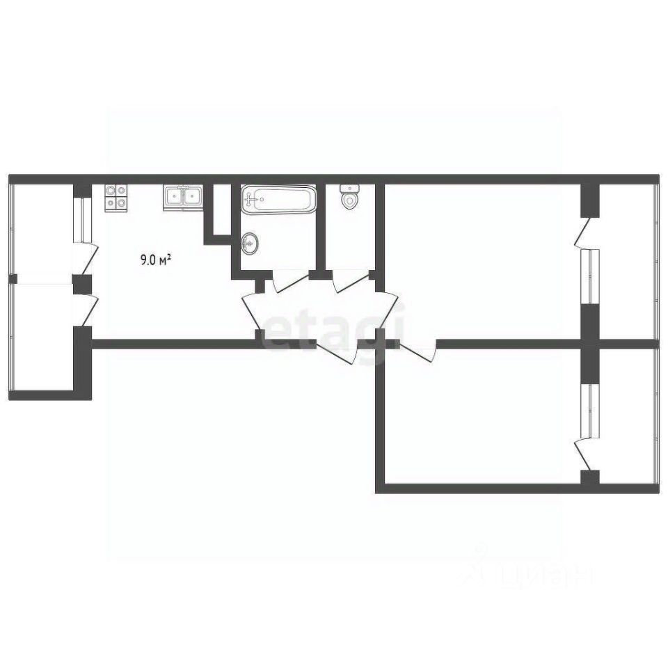 В каждой квартире совмещенный санузел, своя кухня, лоджии из каждой комнаты.