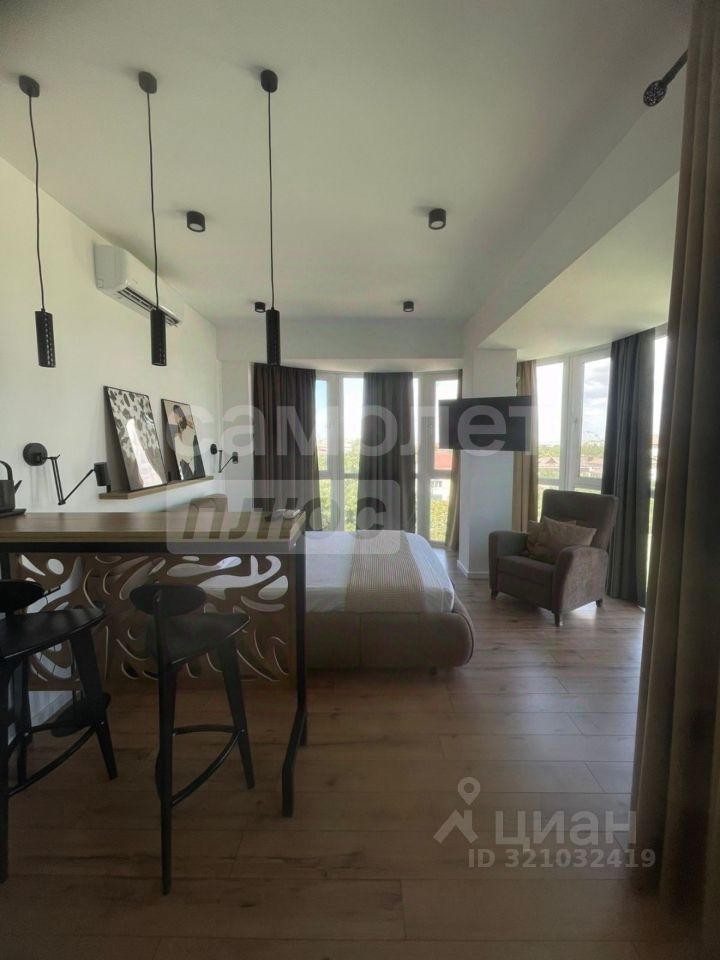 Студия полностью готова к проживанию и для сдачи в аренду. Выполнен качественный дизайнерский ремонт, современная мебель и техника. Функциональная планировка: зона отдыха, спальное место и кухня в одном пространстве.