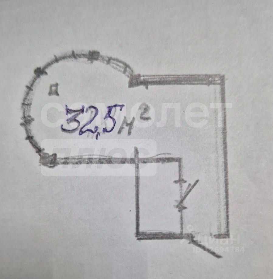 Общая площадь - 32,5 кв.м., жилая - 25 кв.м. Санузел совмещенный.