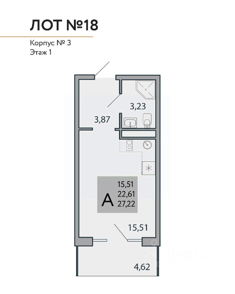 Квадратура апартаментов: от 25,2 до 80,4 м2.
