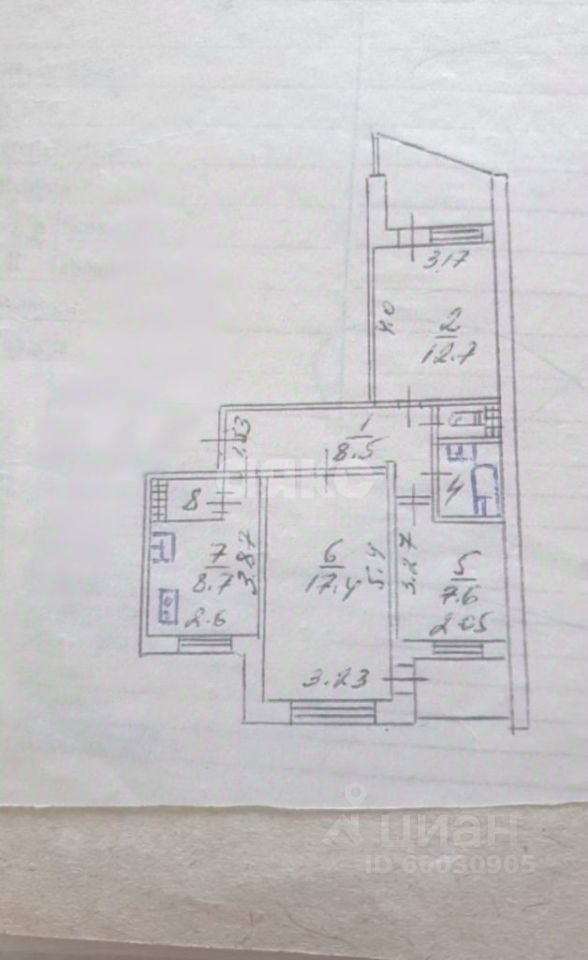 Расположена на восьмом этаже девятиэтажного панельного дома (видовые характеристики, меньше шума и пыли с улицы).
