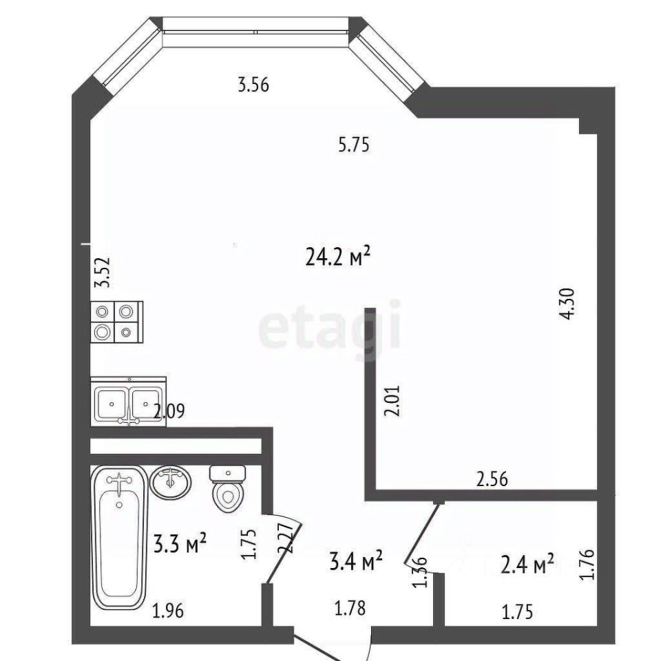 Продается современная студия площадью 33,3 м² на первом этаже нового трехэтажного дома в селе Штормовое.