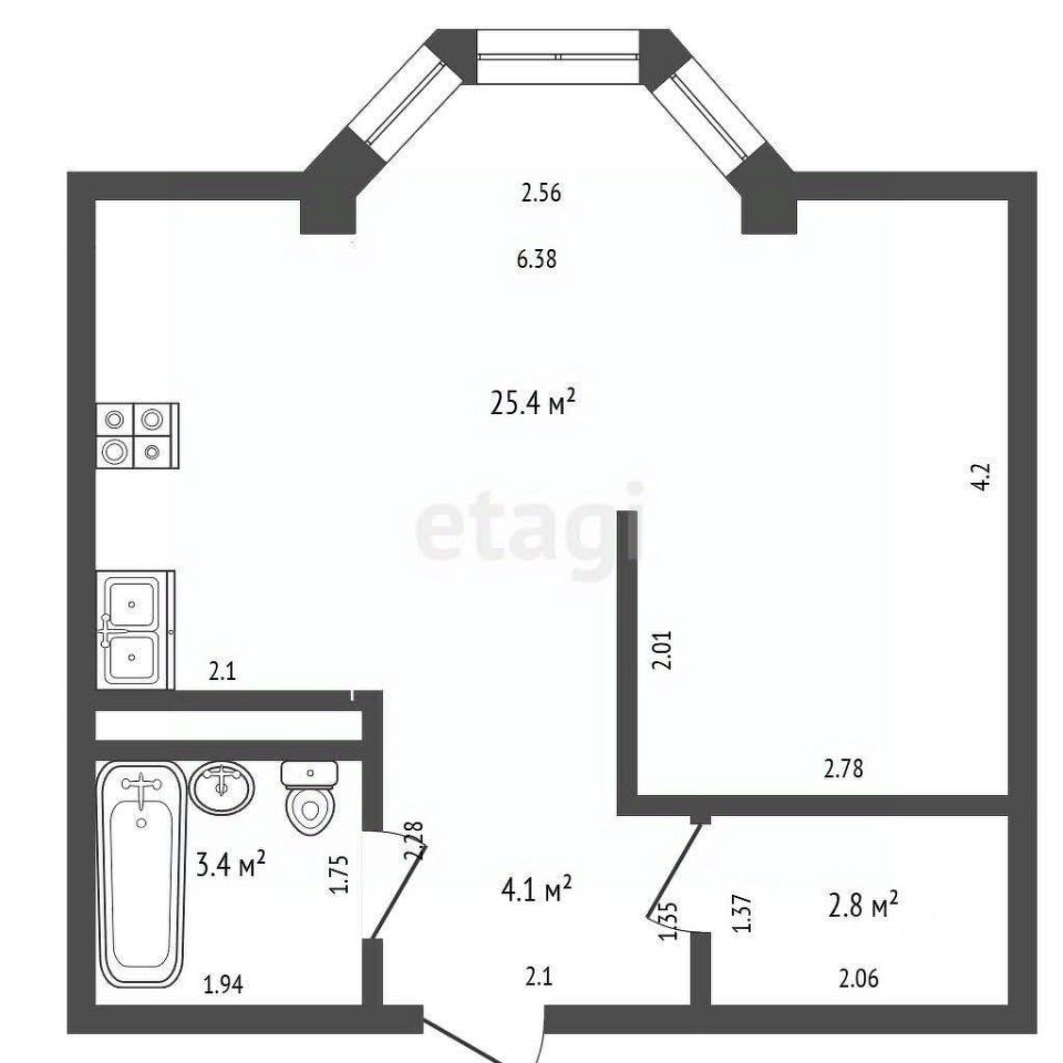 Продается современная студия площадью 35,7 м² на первом этаже нового трехэтажного дома в селе Штормовое.