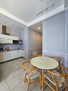 В квартире выполнен дизайнерский ремонт, который сочетает в себе стиль и функциональность. Просторная студия оборудована всем необходимым для комфортной жизни. Совмещенный санузел оформлен современно и стильно, поэтому вы сможете наслаждаться каждой минутой, проведенной в этих апартаментах. Наличие балкона позволяет наслаждаться свежим воздухом и прекрасными видами.