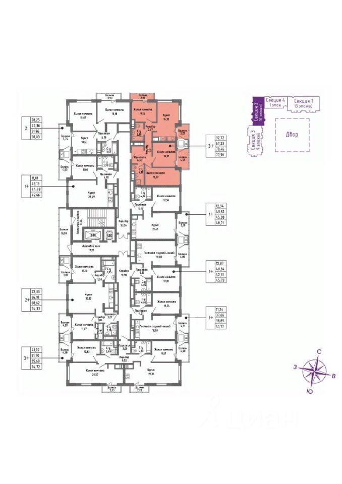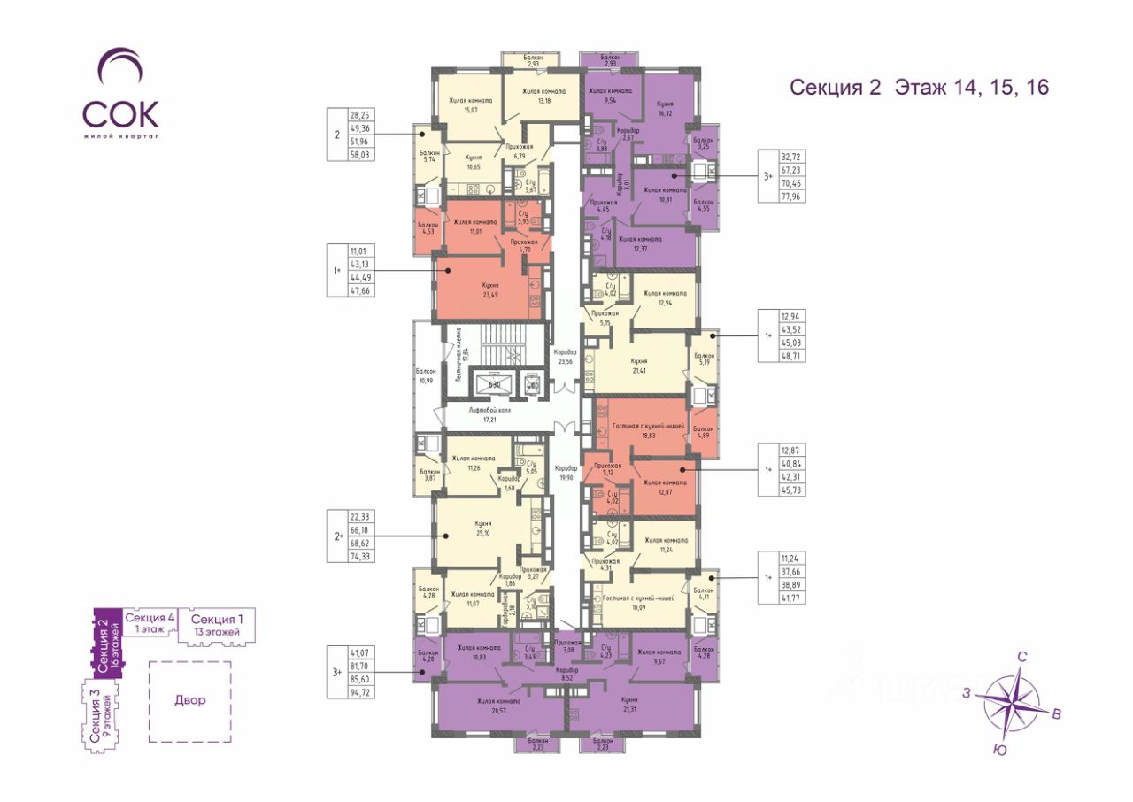 Продаётся квартира 232 площадью 77,96 м2 в новом ЖК СОК