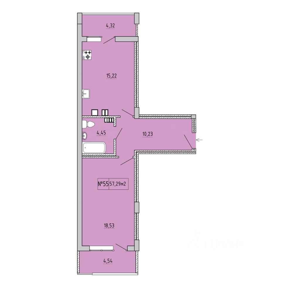 Продается 1-комн. квартира, 52,86 м²