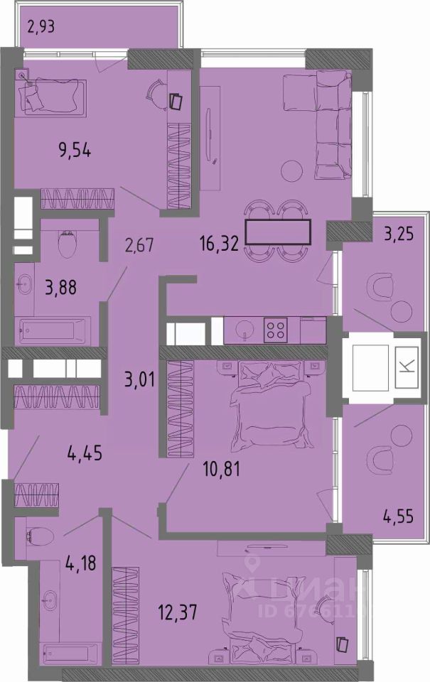 Продаётся квартира 232 площадью 77,96 м2 в новом ЖК СОК