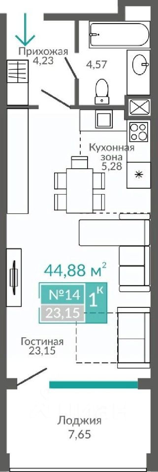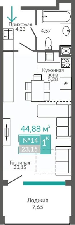 Общая площадь44,88 м²