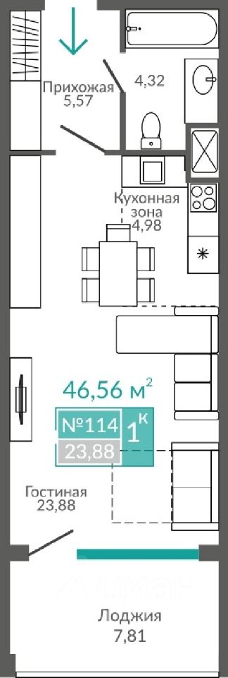 Продаются 1-комнатные апартаменты в строящемся доме (Блок 7), срок сдачи: II-кв. 2027, общей площадью 46.56 кв.м., на 8 этаже. Расположение, транспортная доступностьЖК "Золотые пески" расположен в новом районе города Евпатории. Симферопольская улица, переходящая в одноименное шоссе, которое далее становится Евпаторийским шоссе, в направлении города Саки — это полоса между озером Сасык (с одной стороны) и Черным морем (со стороны новостройки). Евпатория известна своими пляжами, наилучшие из которых — песчаные, здесь находится природная широкая полоса песка на протяжении всей трассы.От исторического центра, набережной Евпатории (ориентир — мечеть Джума-Джами), до ЖК "Золотые пески" меньше 5 км. Жилой комплекс очень удобно расположен вблизи автобусных остановок и железнодорожной станции "54-й км". Электричка идет до ж/д вокзала Евпатории около двенадцати минут.ИнфраструктураАпартаменты "Золотые пески" спроектированы как мини-город: жильцы, владельцы или гости апартаментов должны быть полностью обеспечены всем для проживания и отдыха. СПА-центры, кафе и бары, спортивные залы и детские игровые комнаты будут к услугам проживающих в жилом комплексе. Теннисные корты, кинотеатр и открытые детские площадки также предусмотрены проектом.Евпатория с ее развитой инфраструктурой находится недалеко, всего в пяти километрах. В городе расположены медицинские и общеобразовательные учреждения, салоны красоты и рестораны, спортивные комплексы. Несколько километров на машине или автобусе по Симферопольскому шоссе в другую от Евпатории сторону, к городу Саки, — и к услугам жильцов аквапарк "Банановая республика", один из самых известных в этом районе Крыма. Грязелечебницы и озеро Мойнаки находятся в ближайшем к ЖК районе Евпатории, в частных и государственных клиниках предлагаются циклы оздоравливающих ванн и процедур. Озеро и лиман напротив — место, где живет множество птиц, в том числе и лебеди.Надежность застройщикаКрымский застройщик "Монолит" известен на полуострове как строительная компания, активно растущая в профессиональной сфере. В данный момент в портфеле застройщика четыре готовых дома, строится 25 домов. Застройщик на сайте проекта выкладывает актуальные фото и видео, информирует о ходе строительных работ. Сроки не выходят за пределы, указанные в документации.АрхитектураЖК "Золотые пески" возводится в несколько очередей, сдается в эксплуатацию посекционно. По конструкции это жилая новостройка с помещениями под коммерческий найм. Технология постройки — монолитно-каркасная, основа корпусов — железобетон. В каждой из трех секций девять этажей. Фасадная часть отделана ракушечником и штукатуркой. На крыше металлочерепица, есть террасы. Апартаменты пригодны для круглогодичного проживания благодаря собственной котельной, предусмотренной на территории жилого комплекса.В корпусе имеются 1,2,3 и 4-х комнатные апартаменты площадью от 43 до 207 квадратных метров. Планировки просторные, много остекления и света в комнатах, есть лоджии, кухни не менее чем 6 кв. м. Сдава