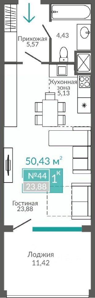 Продаются 1-комнатные апартаменты в строящемся доме (Блок 7), срок сдачи: II-кв. 2027, общей площадью 50.43 кв.м., на 4 этаже. Расположение, транспортная доступностьЖК "Золотые пески" расположен в новом районе города Евпатории. Симферопольская улица, переходящая в одноименное шоссе, которое далее становится Евпаторийским шоссе, в направлении города Саки — это полоса между озером Сасык (с одной стороны) и Черным морем (со стороны новостройки). Евпатория известна своими пляжами, наилучшие из которых — песчаные, здесь находится природная широкая полоса песка на протяжении всей трассы.От исторического центра, набережной Евпатории (ориентир — мечеть Джума-Джами), до ЖК "Золотые пески" меньше 5 км. Жилой комплекс очень удобно расположен вблизи автобусных остановок и железнодорожной станции "54-й км". Электричка идет до ж/д вокзала Евпатории около двенадцати минут.ИнфраструктураАпартаменты "Золотые пески" спроектированы как мини-город: жильцы, владельцы или гости апартаментов должны быть полностью обеспечены всем для проживания и отдыха. СПА-центры, кафе и бары, спортивные залы и детские игровые комнаты будут к услугам проживающих в жилом комплексе. Теннисные корты, кинотеатр и открытые детские площадки также предусмотрены проектом.Евпатория с ее развитой инфраструктурой находится недалеко, всего в пяти километрах. В городе расположены медицинские и общеобразовательные учреждения, салоны красоты и рестораны, спортивные комплексы. Несколько километров на машине или автобусе по Симферопольскому шоссе в другую от Евпатории сторону, к городу Саки, — и к услугам жильцов аквапарк "Банановая республика", один из самых известных в этом районе Крыма. Грязелечебницы и озеро Мойнаки находятся в ближайшем к ЖК районе Евпатории, в частных и государственных клиниках предлагаются циклы оздоравливающих ванн и процедур. Озеро и лиман напротив — место, где живет множество птиц, в том числе и лебеди.Надежность застройщикаКрымский застройщик "Монолит" известен на полуострове как строительная компания, активно растущая в профессиональной сфере. В данный момент в портфеле застройщика четыре готовых дома, строится 25 домов. Застройщик на сайте проекта выкладывает актуальные фото и видео, информирует о ходе строительных работ. Сроки не выходят за пределы, указанные в документации.АрхитектураЖК "Золотые пески" возводится в несколько очередей, сдается в эксплуатацию посекционно. По конструкции это жилая новостройка с помещениями под коммерческий найм. Технология постройки — монолитно-каркасная, основа корпусов — железобетон. В каждой из трех секций девять этажей. Фасадная часть отделана ракушечником и штукатуркой. На крыше металлочерепица, есть террасы. Апартаменты пригодны для круглогодичного проживания благодаря собственной котельной, предусмотренной на территории жилого комплекса.В корпусе имеются 1,2,3 и 4-х комнатные апартаменты площадью от 43 до 207 квадратных метров. Планировки просторные, много остекления и света в комнатах, есть лоджии, кухни не менее чем 6 кв. м. Сдава
