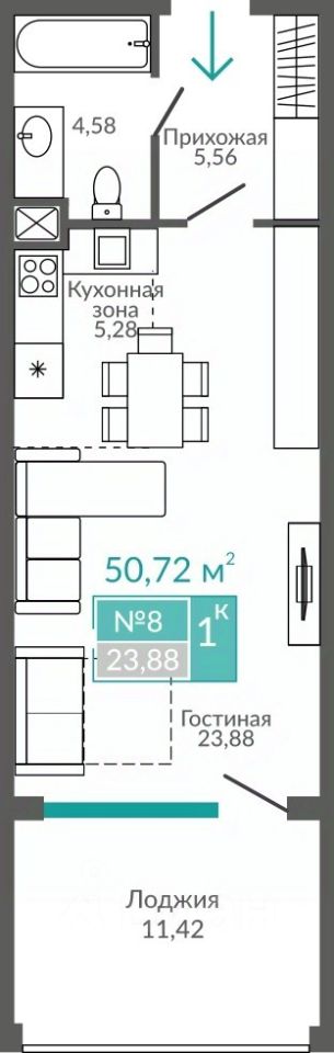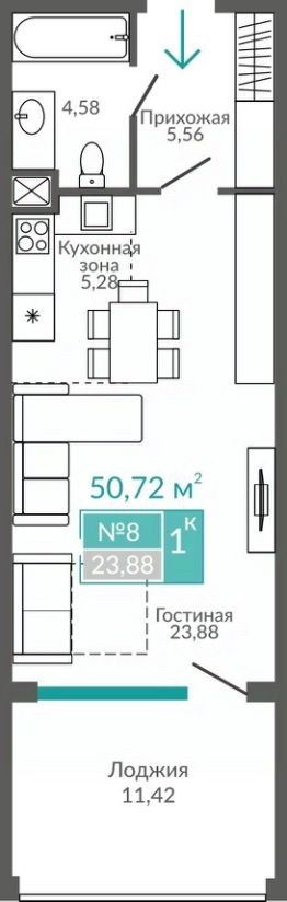 Продаются 1-комнатные апартаменты в строящемся доме (Блок 7), срок сдачи: II-кв. 2027, общей площадью 50.72 кв.м., на 2 этаже. Расположение, транспортная доступностьЖК "Золотые пески" расположен в новом районе города Евпатории. Симферопольская улица, переходящая в одноименное шоссе, которое далее становится Евпаторийским шоссе, в направлении города Саки — это полоса между озером Сасык (с одной стороны) и Черным морем (со стороны новостройки). Евпатория известна своими пляжами, наилучшие из которых — песчаные, здесь находится природная широкая полоса песка на протяжении всей трассы.От исторического центра, набережной Евпатории (ориентир — мечеть Джума-Джами), до ЖК "Золотые пески" меньше 5 км. Жилой комплекс очень удобно расположен вблизи автобусных остановок и железнодорожной станции "54-й км". Электричка идет до ж/д вокзала Евпатории около двенадцати минут.ИнфраструктураАпартаменты "Золотые пески" спроектированы как мини-город: жильцы, владельцы или гости апартаментов должны быть полностью обеспечены всем для проживания и отдыха. СПА-центры, кафе и бары, спортивные залы и детские игровые комнаты будут к услугам проживающих в жилом комплексе. Теннисные корты, кинотеатр и открытые детские площадки также предусмотрены проектом.Евпатория с ее развитой инфраструктурой находится недалеко, всего в пяти километрах. В городе расположены медицинские и общеобразовательные учреждения, салоны красоты и рестораны, спортивные комплексы. Несколько километров на машине или автобусе по Симферопольскому шоссе в другую от Евпатории сторону, к городу Саки, — и к услугам жильцов аквапарк "Банановая республика", один из самых известных в этом районе Крыма. Грязелечебницы и озеро Мойнаки находятся в ближайшем к ЖК районе Евпатории, в частных и государственных клиниках предлагаются циклы оздоравливающих ванн и процедур. Озеро и лиман напротив — место, где живет множество птиц, в том числе и лебеди.Надежность застройщикаКрымский застройщик "Монолит" известен на полуострове как строительная компания, активно растущая в профессиональной сфере. В данный момент в портфеле застройщика четыре готовых дома, строится 25 домов. Застройщик на сайте проекта выкладывает актуальные фото и видео, информирует о ходе строительных работ. Сроки не выходят за пределы, указанные в документации.АрхитектураЖК "Золотые пески" возводится в несколько очередей, сдается в эксплуатацию посекционно. По конструкции это жилая новостройка с помещениями под коммерческий найм. Технология постройки — монолитно-каркасная, основа корпусов — железобетон. В каждой из трех секций девять этажей. Фасадная часть отделана ракушечником и штукатуркой. На крыше металлочерепица, есть террасы. Апартаменты пригодны для круглогодичного проживания благодаря собственной котельной, предусмотренной на территории жилого комплекса.В корпусе имеются 1,2,3 и 4-х комнатные апартаменты площадью от 43 до 207 квадратных метров. Планировки просторные, много остекления и света в комнатах, есть лоджии, кухни не менее чем 6 кв. м. Сдава