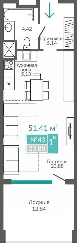 Продаются 1-комнатные апартаменты в строящемся доме (Блок 7), срок сдачи: II-кв. 2027, общей площадью 51.41 кв.м., на 4 этаже. Расположение, транспортная доступностьЖК "Золотые пески" расположен в новом районе города Евпатории. Симферопольская улица, переходящая в одноименное шоссе, которое далее становится Евпаторийским шоссе, в направлении города Саки — это полоса между озером Сасык (с одной стороны) и Черным морем (со стороны новостройки). Евпатория известна своими пляжами, наилучшие из которых — песчаные, здесь находится природная широкая полоса песка на протяжении всей трассы.От исторического центра, набережной Евпатории (ориентир — мечеть Джума-Джами), до ЖК "Золотые пески" меньше 5 км. Жилой комплекс очень удобно расположен вблизи автобусных остановок и железнодорожной станции "54-й км". Электричка идет до ж/д вокзала Евпатории около двенадцати минут.ИнфраструктураАпартаменты "Золотые пески" спроектированы как мини-город: жильцы, владельцы или гости апартаментов должны быть полностью обеспечены всем для проживания и отдыха. СПА-центры, кафе и бары, спортивные залы и детские игровые комнаты будут к услугам проживающих в жилом комплексе. Теннисные корты, кинотеатр и открытые детские площадки также предусмотрены проектом.Евпатория с ее развитой инфраструктурой находится недалеко, всего в пяти километрах. В городе расположены медицинские и общеобразовательные учреждения, салоны красоты и рестораны, спортивные комплексы. Несколько километров на машине или автобусе по Симферопольскому шоссе в другую от Евпатории сторону, к городу Саки, — и к услугам жильцов аквапарк "Банановая республика", один из самых известных в этом районе Крыма. Грязелечебницы и озеро Мойнаки находятся в ближайшем к ЖК районе Евпатории, в частных и государственных клиниках предлагаются циклы оздоравливающих ванн и процедур. Озеро и лиман напротив — место, где живет множество птиц, в том числе и лебеди.Надежность застройщикаКрымский застройщик "Монолит" известен на полуострове как строительная компания, активно растущая в профессиональной сфере. В данный момент в портфеле застройщика четыре готовых дома, строится 25 домов. Застройщик на сайте проекта выкладывает актуальные фото и видео, информирует о ходе строительных работ. Сроки не выходят за пределы, указанные в документации.АрхитектураЖК "Золотые пески" возводится в несколько очередей, сдается в эксплуатацию посекционно. По конструкции это жилая новостройка с помещениями под коммерческий найм. Технология постройки — монолитно-каркасная, основа корпусов — железобетон. В каждой из трех секций девять этажей. Фасадная часть отделана ракушечником и штукатуркой. На крыше металлочерепица, есть террасы. Апартаменты пригодны для круглогодичного проживания благодаря собственной котельной, предусмотренной на территории жилого комплекса.В корпусе имеются 1,2,3 и 4-х комнатные апартаменты площадью от 43 до 207 квадратных метров. Планировки просторные, много остекления и света в комнатах, есть лоджии, кухни не менее чем 6 кв. м. Сдава