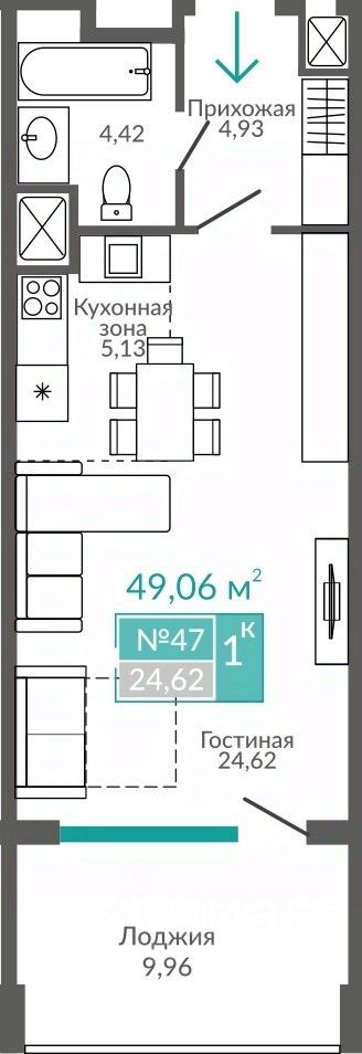 Продаются 1-комнатные апартаменты в строящемся доме (Блок 7), срок сдачи: II-кв. 2027, общей площадью 49.06 кв.м., на 4 этаже. Расположение, транспортная доступностьЖК "Золотые пески" расположен в новом районе города Евпатории. Симферопольская улица, переходящая в одноименное шоссе, которое далее становится Евпаторийским шоссе, в направлении города Саки — это полоса между озером Сасык (с одной стороны) и Черным морем (со стороны новостройки). Евпатория известна своими пляжами, наилучшие из которых — песчаные, здесь находится природная широкая полоса песка на протяжении всей трассы.От исторического центра, набережной Евпатории (ориентир — мечеть Джума-Джами), до ЖК "Золотые пески" меньше 5 км. Жилой комплекс очень удобно расположен вблизи автобусных остановок и железнодорожной станции "54-й км". Электричка идет до ж/д вокзала Евпатории около двенадцати минут.ИнфраструктураАпартаменты "Золотые пески" спроектированы как мини-город: жильцы, владельцы или гости апартаментов должны быть полностью обеспечены всем для проживания и отдыха. СПА-центры, кафе и бары, спортивные залы и детские игровые комнаты будут к услугам проживающих в жилом комплексе. Теннисные корты, кинотеатр и открытые детские площадки также предусмотрены проектом.Евпатория с ее развитой инфраструктурой находится недалеко, всего в пяти километрах. В городе расположены медицинские и общеобразовательные учреждения, салоны красоты и рестораны, спортивные комплексы. Несколько километров на машине или автобусе по Симферопольскому шоссе в другую от Евпатории сторону, к городу Саки, — и к услугам жильцов аквапарк "Банановая республика", один из самых известных в этом районе Крыма. Грязелечебницы и озеро Мойнаки находятся в ближайшем к ЖК районе Евпатории, в частных и государственных клиниках предлагаются циклы оздоравливающих ванн и процедур. Озеро и лиман напротив — место, где живет множество птиц, в том числе и лебеди.Надежность застройщикаКрымский застройщик "Монолит" известен на полуострове как строительная компания, активно растущая в профессиональной сфере. В данный момент в портфеле застройщика четыре готовых дома, строится 25 домов. Застройщик на сайте проекта выкладывает актуальные фото и видео, информирует о ходе строительных работ. Сроки не выходят за пределы, указанные в документации.АрхитектураЖК "Золотые пески" возводится в несколько очередей, сдается в эксплуатацию посекционно. По конструкции это жилая новостройка с помещениями под коммерческий найм. Технология постройки — монолитно-каркасная, основа корпусов — железобетон. В каждой из трех секций девять этажей. Фасадная часть отделана ракушечником и штукатуркой. На крыше металлочерепица, есть террасы. Апартаменты пригодны для круглогодичного проживания благодаря собственной котельной, предусмотренной на территории жилого комплекса.В корпусе имеются 1,2,3 и 4-х комнатные апартаменты площадью от 43 до 207 квадратных метров. Планировки просторные, много остекления и света в комнатах, есть лоджии, кухни не менее чем 6 кв. м. Сдава