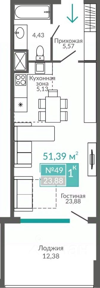 Продаются 1-комнатные апартаменты в строящемся доме (Блок 7), срок сдачи: II-кв. 2027, общей площадью 51.39 кв.м., на 4 этаже. Расположение, транспортная доступностьЖК "Золотые пески" расположен в новом районе города Евпатории. Симферопольская улица, переходящая в одноименное шоссе, которое далее становится Евпаторийским шоссе, в направлении города Саки — это полоса между озером Сасык (с одной стороны) и Черным морем (со стороны новостройки). Евпатория известна своими пляжами, наилучшие из которых — песчаные, здесь находится природная широкая полоса песка на протяжении всей трассы.От исторического центра, набережной Евпатории (ориентир — мечеть Джума-Джами), до ЖК "Золотые пески" меньше 5 км. Жилой комплекс очень удобно расположен вблизи автобусных остановок и железнодорожной станции "54-й км". Электричка идет до ж/д вокзала Евпатории около двенадцати минут.ИнфраструктураАпартаменты "Золотые пески" спроектированы как мини-город: жильцы, владельцы или гости апартаментов должны быть полностью обеспечены всем для проживания и отдыха. СПА-центры, кафе и бары, спортивные залы и детские игровые комнаты будут к услугам проживающих в жилом комплексе. Теннисные корты, кинотеатр и открытые детские площадки также предусмотрены проектом.Евпатория с ее развитой инфраструктурой находится недалеко, всего в пяти километрах. В городе расположены медицинские и общеобразовательные учреждения, салоны красоты и рестораны, спортивные комплексы. Несколько километров на машине или автобусе по Симферопольскому шоссе в другую от Евпатории сторону, к городу Саки, — и к услугам жильцов аквапарк "Банановая республика", один из самых известных в этом районе Крыма. Грязелечебницы и озеро Мойнаки находятся в ближайшем к ЖК районе Евпатории, в частных и государственных клиниках предлагаются циклы оздоравливающих ванн и процедур. Озеро и лиман напротив — место, где живет множество птиц, в том числе и лебеди.Надежность застройщикаКрымский застройщик "Монолит" известен на полуострове как строительная компания, активно растущая в профессиональной сфере. В данный момент в портфеле застройщика четыре готовых дома, строится 25 домов. Застройщик на сайте проекта выкладывает актуальные фото и видео, информирует о ходе строительных работ. Сроки не выходят за пределы, указанные в документации.АрхитектураЖК "Золотые пески" возводится в несколько очередей, сдается в эксплуатацию посекционно. По конструкции это жилая новостройка с помещениями под коммерческий найм. Технология постройки — монолитно-каркасная, основа корпусов — железобетон. В каждой из трех секций девять этажей. Фасадная часть отделана ракушечником и штукатуркой. На крыше металлочерепица, есть террасы. Апартаменты пригодны для круглогодичного проживания благодаря собственной котельной, предусмотренной на территории жилого комплекса.В корпусе имеются 1,2,3 и 4-х комнатные апартаменты площадью от 43 до 207 квадратных метров. Планировки просторные, много остекления и света в комнатах, есть лоджии, кухни не менее чем 6 кв. м. Сдава