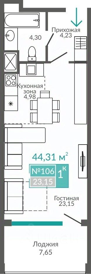 Продаются 1-комнатные апартаменты в строящемся доме (Блок 7), срок сдачи: II-кв. 2027, общей площадью 44.31 кв.м., на 8 этаже. Расположение, транспортная доступностьЖК "Золотые пески" расположен в новом районе города Евпатории. Симферопольская улица, переходящая в одноименное шоссе, которое далее становится Евпаторийским шоссе, в направлении города Саки — это полоса между озером Сасык (с одной стороны) и Черным морем (со стороны новостройки). Евпатория известна своими пляжами, наилучшие из которых — песчаные, здесь находится природная широкая полоса песка на протяжении всей трассы.От исторического центра, набережной Евпатории (ориентир — мечеть Джума-Джами), до ЖК "Золотые пески" меньше 5 км. Жилой комплекс очень удобно расположен вблизи автобусных остановок и железнодорожной станции "54-й км". Электричка идет до ж/д вокзала Евпатории около двенадцати минут.ИнфраструктураАпартаменты "Золотые пески" спроектированы как мини-город: жильцы, владельцы или гости апартаментов должны быть полностью обеспечены всем для проживания и отдыха. СПА-центры, кафе и бары, спортивные залы и детские игровые комнаты будут к услугам проживающих в жилом комплексе. Теннисные корты, кинотеатр и открытые детские площадки также предусмотрены проектом.Евпатория с ее развитой инфраструктурой находится недалеко, всего в пяти километрах. В городе расположены медицинские и общеобразовательные учреждения, салоны красоты и рестораны, спортивные комплексы. Несколько километров на машине или автобусе по Симферопольскому шоссе в другую от Евпатории сторону, к городу Саки, — и к услугам жильцов аквапарк "Банановая республика", один из самых известных в этом районе Крыма. Грязелечебницы и озеро Мойнаки находятся в ближайшем к ЖК районе Евпатории, в частных и государственных клиниках предлагаются циклы оздоравливающих ванн и процедур. Озеро и лиман напротив — место, где живет множество птиц, в том числе и лебеди.Надежность застройщикаКрымский застройщик "Монолит" известен на полуострове как строительная компания, активно растущая в профессиональной сфере. В данный момент в портфеле застройщика четыре готовых дома, строится 25 домов. Застройщик на сайте проекта выкладывает актуальные фото и видео, информирует о ходе строительных работ. Сроки не выходят за пределы, указанные в документации.АрхитектураЖК "Золотые пески" возводится в несколько очередей, сдается в эксплуатацию посекционно. По конструкции это жилая новостройка с помещениями под коммерческий найм. Технология постройки — монолитно-каркасная, основа корпусов — железобетон. В каждой из трех секций девять этажей. Фасадная часть отделана ракушечником и штукатуркой. На крыше металлочерепица, есть террасы. Апартаменты пригодны для круглогодичного проживания благодаря собственной котельной, предусмотренной на территории жилого комплекса.В корпусе имеются 1,2,3 и 4-х комнатные апартаменты площадью от 43 до 207 квадратных метров. Планировки просторные, много остекления и света в комнатах, есть лоджии, кухни не менее чем 6 кв. м. Сдава