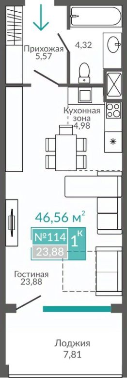Продаются 1-комнатные апартаменты в строящемся доме (Блок 7), срок сдачи: II-кв. 2027, общей площадью 46.56 кв.м., на 8 этаже. Расположение, транспортная доступностьЖК "Золотые пески" расположен в новом районе города Евпатории. Симферопольская улица, переходящая в одноименное шоссе, которое далее становится Евпаторийским шоссе, в направлении города Саки — это полоса между озером Сасык (с одной стороны) и Черным морем (со стороны новостройки). Евпатория известна своими пляжами, наилучшие из которых — песчаные, здесь находится природная широкая полоса песка на протяжении всей трассы.От исторического центра, набережной Евпатории (ориентир — мечеть Джума-Джами), до ЖК "Золотые пески" меньше 5 км. Жилой комплекс очень удобно расположен вблизи автобусных остановок и железнодорожной станции "54-й км". Электричка идет до ж/д вокзала Евпатории около двенадцати минут.ИнфраструктураАпартаменты "Золотые пески" спроектированы как мини-город: жильцы, владельцы или гости апартаментов должны быть полностью обеспечены всем для проживания и отдыха. СПА-центры, кафе и бары, спортивные залы и детские игровые комнаты будут к услугам проживающих в жилом комплексе. Теннисные корты, кинотеатр и открытые детские площадки также предусмотрены проектом.Евпатория с ее развитой инфраструктурой находится недалеко, всего в пяти километрах. В городе расположены медицинские и общеобразовательные учреждения, салоны красоты и рестораны, спортивные комплексы. Несколько километров на машине или автобусе по Симферопольскому шоссе в другую от Евпатории сторону, к городу Саки, — и к услугам жильцов аквапарк "Банановая республика", один из самых известных в этом районе Крыма. Грязелечебницы и озеро Мойнаки находятся в ближайшем к ЖК районе Евпатории, в частных и государственных клиниках предлагаются циклы оздоравливающих ванн и процедур. Озеро и лиман напротив — место, где живет множество птиц, в том числе и лебеди.Надежность застройщикаКрымский застройщик "Монолит" известен на полуострове как строительная компания, активно растущая в профессиональной сфере. В данный момент в портфеле застройщика четыре готовых дома, строится 25 домов. Застройщик на сайте проекта выкладывает актуальные фото и видео, информирует о ходе строительных работ. Сроки не выходят за пределы, указанные в документации.АрхитектураЖК "Золотые пески" возводится в несколько очередей, сдается в эксплуатацию посекционно. По конструкции это жилая новостройка с помещениями под коммерческий найм. Технология постройки — монолитно-каркасная, основа корпусов — железобетон. В каждой из трех секций девять этажей. Фасадная часть отделана ракушечником и штукатуркой. На крыше металлочерепица, есть террасы. Апартаменты пригодны для круглогодичного проживания благодаря собственной котельной, предусмотренной на территории жилого комплекса.В корпусе имеются 1,2,3 и 4-х комнатные апартаменты площадью от 43 до 207 квадратных метров. Планировки просторные, много остекления и света в комнатах, есть лоджии, кухни не менее чем 6 кв. м. Сдава