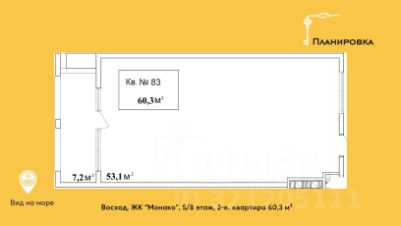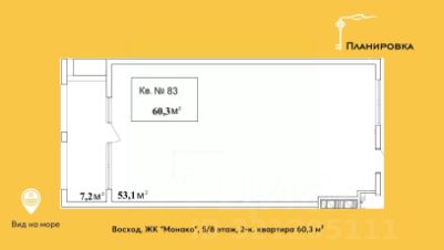 Площадь квартиры - 60,3 м², включая балкон 7,2 м².