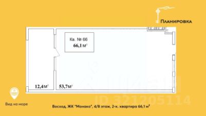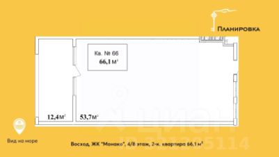 Площадь квартиры - 66,1 м², включая балкон 12,4 м².